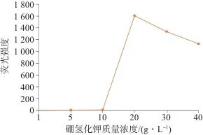 圖1 不同硼氫化鉀質(zhì)量濃度時的熒光強(qiáng)度